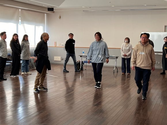 にいがたロケネットの第2回エキストラワークショップが2025年3月22日、新潟市中央区のクロスパルにいがたで開催されました。 参加者約30人はエキストラの心構えを学んだ後、歩く、リアクションなど撮影時に求められる動きを実践。その場で渡された簡単な舞台設定の台本を基にグループに分かれてビデオ撮影を行いました。