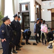 写真はミュージアム撮影中のエキストラのみなさんです。