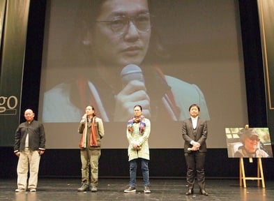 新潟市による「第7回安吾賞」の授賞式が2013年2月23日、りゅーとぴあで行われました。受賞者の故若松孝二監督に代わり、「若松組」の俳優やスタッフらが壇上に上がり、「現場での怒りは激しかったが、同じくらい愛情も深い人だった」などと思い出を語りました。
