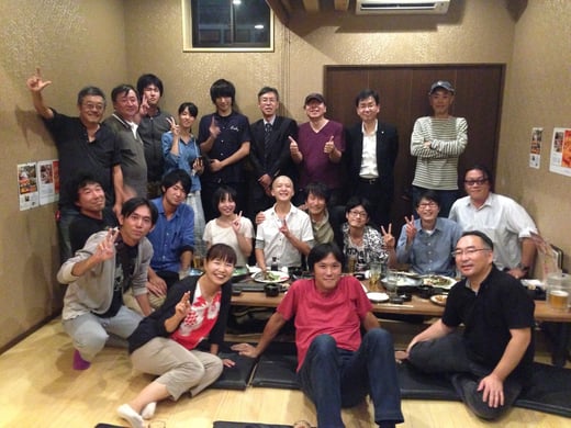 「橋本映画上映会」と題した上映会には多胡監督、寺田カメラマンらスタッフも来訪し、打ち上げでは新潟側出演者・スタッフらと夜遅くまで語り合いました(写真)。「職人の唄」は業界の研修会などで上映される予定です。