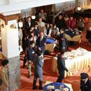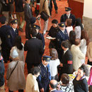 続くレセプションは、新潟市歴史博物館みなとぴあ内のレストランで開催。昭和初期に建てられた銀行を移築したここの建物は、石造りの重厚な洋館で映画「万能鑑定士Q−モナ・リザの瞳」のロケ地にもなりました。余興では古町芸妓(ふるまちげいぎ)による唄や舞も披露され、華やかな雰囲気に包まれました。
