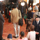 写真はミュージアム撮影中のエキストラのみなさんです。